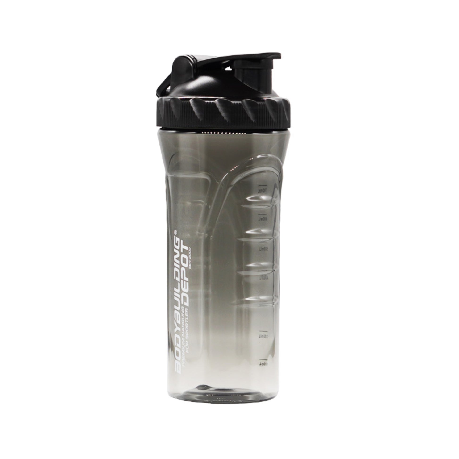 Füllvolumen (bis 900 ml randvoll), transparenter Tönung, Schraubverschluss, Trinköffnung und gut lesbarer Skala bis 700 ml. Passt in viele Getränkehalter, kommt ohne Siebeinsatz aus und ist mit dem Bodybuilding Depot® Logo versehen – ideal für unterwegs und perfekt lösliche Supplements.